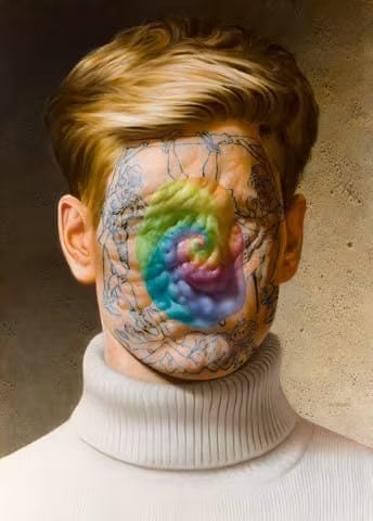 Los lienzos de Van Minnen generan una cierta incomodidad por lo extraño de lo que muestran. A pesar de todo, in- citan a resistir el impulso propio de apartar la mirada. En sus retratos, el artista muestra pieles enfermas, con llagas y pústulas, en las que se lucen tatuajes, referen- cias cinematográficas y algún que otro meme. Sus bodegones entremezclan gominolas deformadas, alimentos podridos, flores y rostros humanoides en descomposición. Atracción