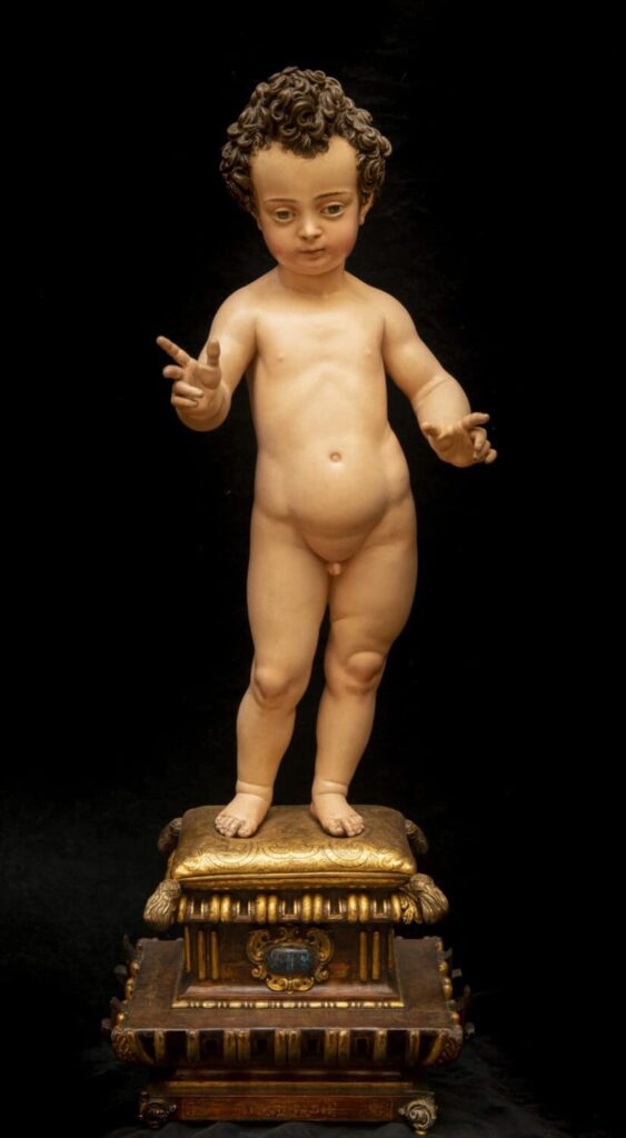 La mayoría de las obras que se pueden ver en la muestra son tallas en madera, pero también hay interesantes ejemplos de marfiles, terracotas, alguna vidriada e incluso bronces.