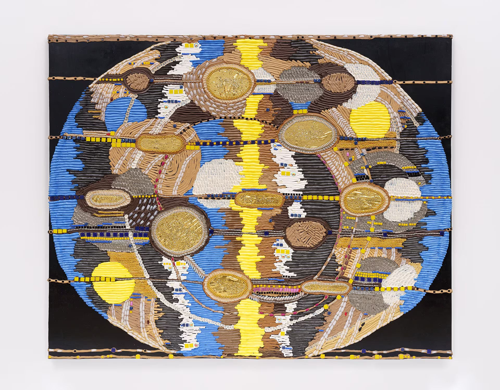 Las instalaciones multimedia de Theresa Weber son una absorvente mezcla de referencias culturales, históricas y mitológicas que reflejan su enfoque conceptual al siempre cambiante nexo de la identidad. Influenciada por los escritos del teórico y poeta caribeño postcolonial, Édouard Glissant, examina las complejidades de la reinvención cultural utilizando motivos tomados de la naturaleza. Su práctica desdibuja el límite entre la escultura y la performance, como se evidencia en Woven Bodies, una escultura colgante y portátil hecha de tela de nailon anudada y tejida, adornada con objetos encontrados. Oscilando entre la opacidad y la transparencia, sus elecciones de material sugieren tanto resiliencia como una frágil sutileza, mientras teje una rica red de narración interseccional. La primera comisión pública y específica del sitio de Weber, Cycles of Unmasking, se exhibió en Somerset House, en 2023, y su primera exposición individual en un museo se abrirá en Alemania, en el Kunstmuseum Bochum, este junio.