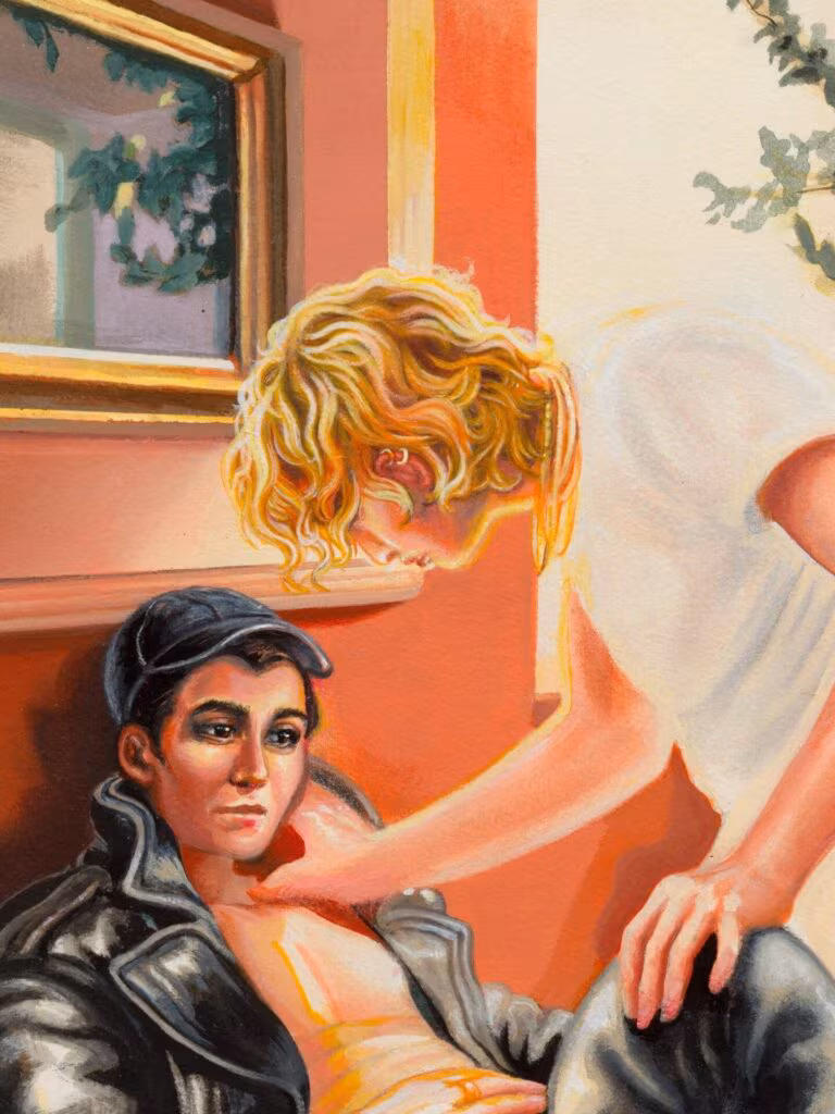 Al entrelazar los mundos interior y exterior, Farrell traza conmovedores paralelismos entre la evolución urbana y las experiencias de las comunidades queer y trans. Sus composiciones se basan en marcos teóricos queer que abarcan desde la década de 1990 hasta la actualidad, haciendo hincapié en la identidad como concepto intrínsecamente moldeado por la ubicación y la experiencia vivida. Esto es evidente en cuadros como «Estate» (2024), donde una imagen reflejada de la silueta de la artista se superpone a un paisaje urbano nocturno, difuminando las líneas entre figura y suelo. «La pintura puede intentar un facsímil de la realidad», explica Farrell, «pero siempre se desvía y se convierte en otra cosa».