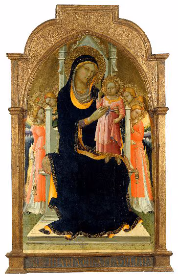 La Virgen de la Humildad (hacia 1433-1435), una obra maestra del monje dominico Fra Angelico (hacia 1395/1400-1455), se convierte en la pieza central de la sala dedicada a la pintura italiana del siglo XV. Datada al inicio del periodo de madurez del artista, la escena está repleta de detalles simbólicos, como las azucenas que aluden a la pureza de María y las rosas rojas y blancas que hacen referencia a la pasión de Cristo. Frente a la frontalidad y al uso del dorado típicos del siglo anterior, Fra Angelico introduce en esta obra un tipo de luz y una paleta de colores que suponen una novedad adoptada durante el Quattrocento. Además, el artista recurre a técnicas innovadoras, con las que ya había experimentado en otras pinturas, como la utilización de incisiones que le ayudan a crear los volúmenes de los paños. Perteneció a la colección del rey Leopoldo I de Bélgica y, entre 1909 y 1935, a la colección Pierpont Morgan de Nueva York. En 1935, fue adquirida por el padre del Barón, Heinrich Thyssen-Bornemisza, y, tras su muerte, fue su hija, la condesa Margit Batthyáni, quien la recibió en herencia hasta que su hermano, el barón Hans Heinrich, se la compró para su colección en 1986.