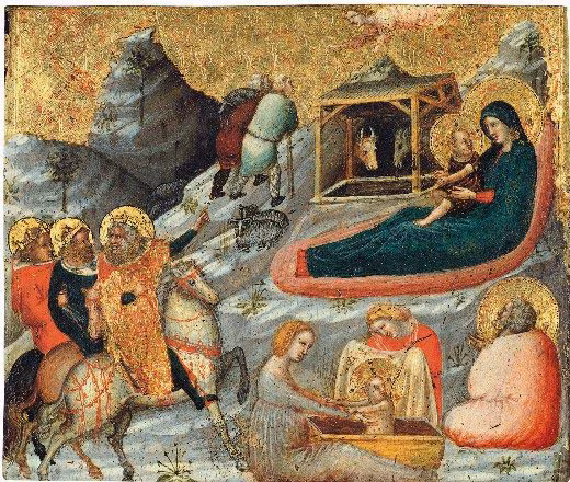 (activo hacia 1325-Florencia, 1366), una tabla que pudo estar destinada a un pequeño oratorio de uso privado. La pintura de Gaddi es un compendio del arte de su maestro, Giotto, en cuyo taller estuvo trabajando 24 años, y de las novedades que fue introduciendo a medida que desarrollaba su propio estilo. Es probable que antiguamente fuera más amplia y se completara con la escena del anuncio a los pastores, ya que en la zona de la izquierda aparecen una oveja y parte de un bastón, y un ángel mira en esa dirección mientras señala hacia el portal. Estuvo depositada en el Museum of Fine Arts de Boston, entre 1876 y 1977, y pertenece a la colección Thyssen desde 1979.