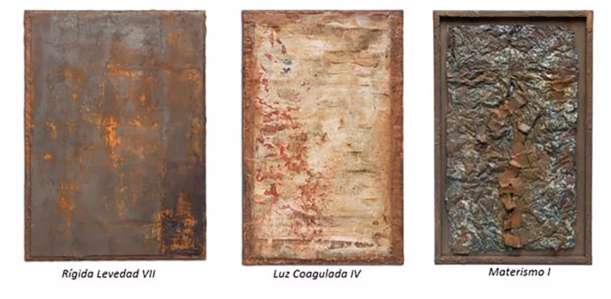 Recoge una parte de las obras pertenecientes a la nueva Trilogía: Rígida Levedad, Luz Coagulada y Materismo, con obras de gran formato, realizadas mediante técnicas mixtas varias, (sobre tela, sobre madera, sobre resina y sobre papel), creadas por el propio artista tras años de trabajo y experimentación. Puede verse la muestra inicial de cuadros disponible en siguiente enlace).