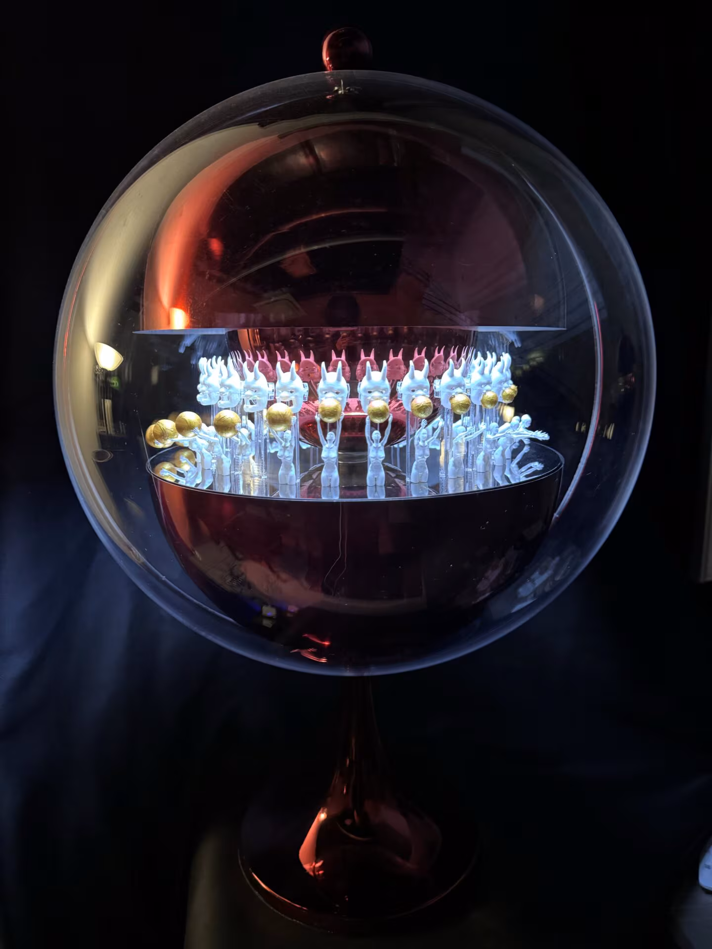 El recorrido por la exposición comienza con las obras del artista chino Xu Zhongmin, cuyas esculturas de orbes dinámicos desafían la percepción del espectador. Sus piezas exploran temas profundos como el enigma del tiempo, el eterno retorno y el lugar del individuo dentro de la humanidad.