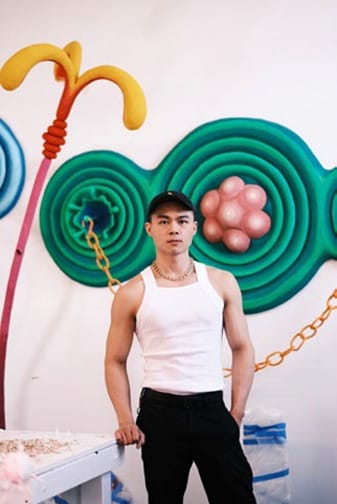 Chen busca el respeto –pero no la aprobación– de su propia forma de vida, que siente castrada, extranjera y parasita- ria. Sus esculturas, repletas de colores llamativos desa- fían los prejuicios que consideran el color algo infantil, femenino, oriental o vulgar. El artista resalta el color y su misma existencia para elevar su significado. “Me gusta desafiar los puntos de vista binarios sobre la sexualidad”, reconoce. Su obra, afirma, “celebra la cultura queer con un enfoque en el empoderamiento y la capacidad de acción”.