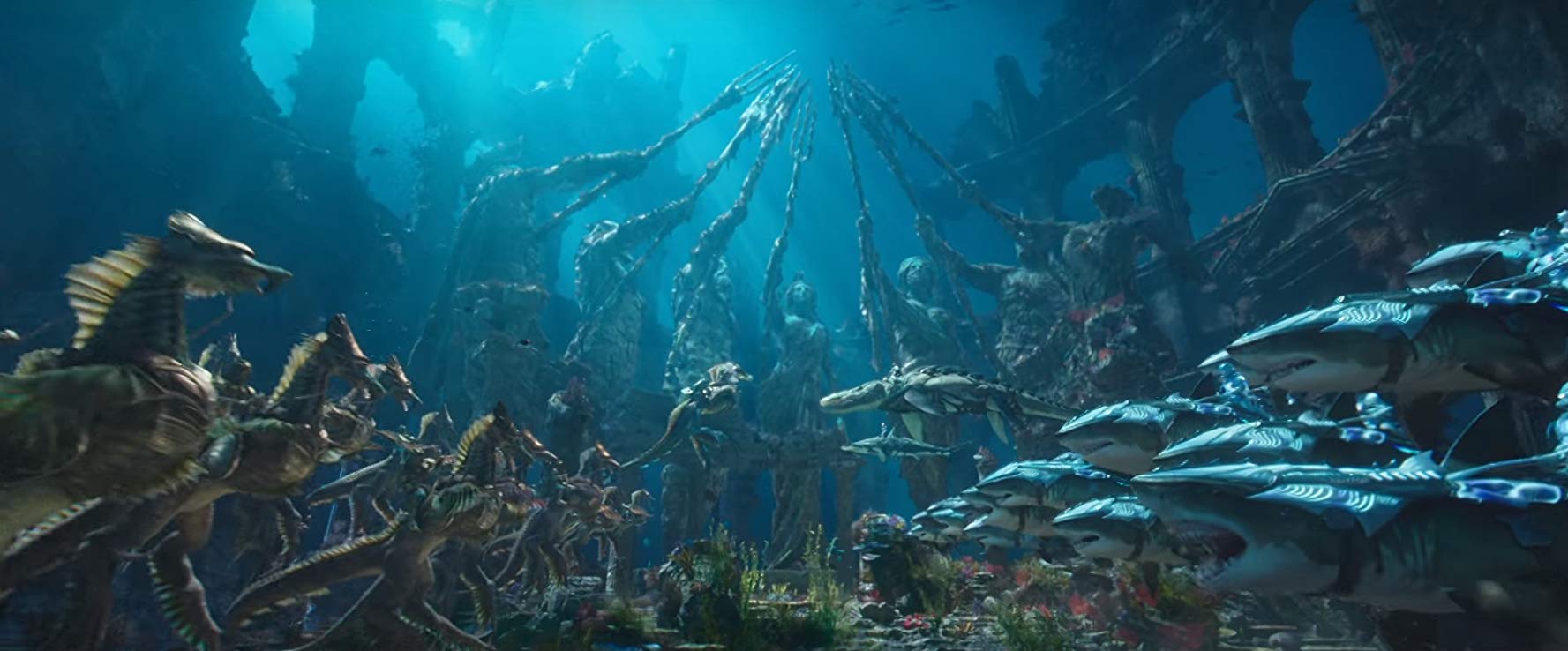 Visualmente atrevida, pero como dijo un crítico por ahí: no podemos olvidar que es un tipo que que cabalga sobre caballitos de mar, así que… Pues para ser una película de gran presupuesto, transita entre lo cómico, la acción y unos efectos especiales omnipresentes que, claro está, quitan el hipo. Esta cosa mal, mal… no está, pero con este argumento tampoco se podía hacer gran cosa, así que la arreglaron poniendo a Jason Momoa, que es el Khal Drogo de Juego de Tronos y bueno, ya como que lo arreglamos del todo. Por decirlo suavemente, en la serie estaba hasta expresivo, aquí no.