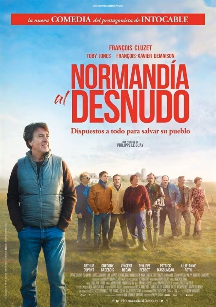Normandía al Desnudo es una comedia francesa de corte rural y costumbrista el que François Cluzet interpreta al alcalde de un pequeño pueblo. La situación económica es desastrosa para todos y la situación de las viejas economías rurales topa con la amenaza de las grandes economías. Y aquí es cuando interviene un famoso fotógrafo de desnudos (Toby Jones),