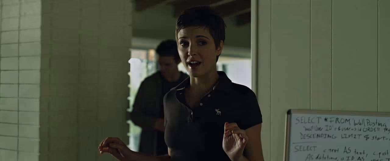 Sinopsis: Una noche de otoño del año 2003, Mark Zuckerberg (Jesse Eisenberg), alumno de Harvard y genio de la programación, se sienta delante de su ordenador y empieza a desarrollar una nueva idea: TheFacebook. Lo que comenzó en la habitación de un colegio mayor pronto se convirtió en una revolucionaria red social. Seis años y 500 millones de amigos después, Zuckerberg es el billonario más joven de la historia. Pero a este joven emprendedor el éxito le trajo también complicaciones personales y legales, en especial la acusación de que robó la idea a unos estudiantes de su misma universidad, y su turbulenta relación con Eduardo Saverin (Andrew Garfield), su antiguo amigo y co-fundador de Facebook. (Filmaffinity)