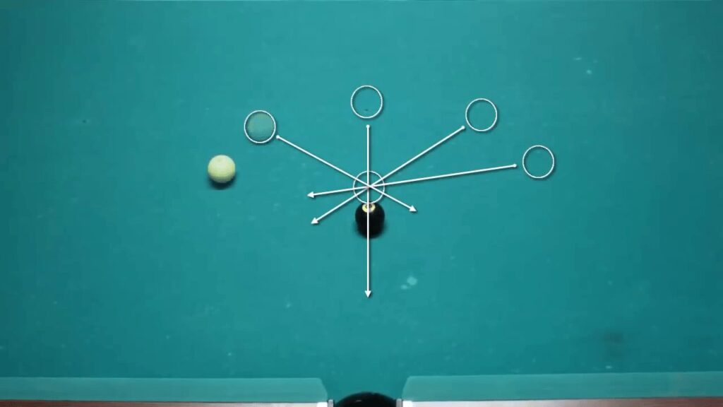 Hay que tener en cuenta que hablamos de bolas con idéntico diámetro, en el caso de que la blanca sea más grande, la cosa cambia y hay que darle algo más (hay que acostumbrarse, según sea el diámetro). Normalmente, y hablando de un set de bolas de campeonato oficiales, las medidas son de 57.2 mm pero hay tantas variedades que… el sistema es idéntico, pero cuidado con que la blanca sea más grande.