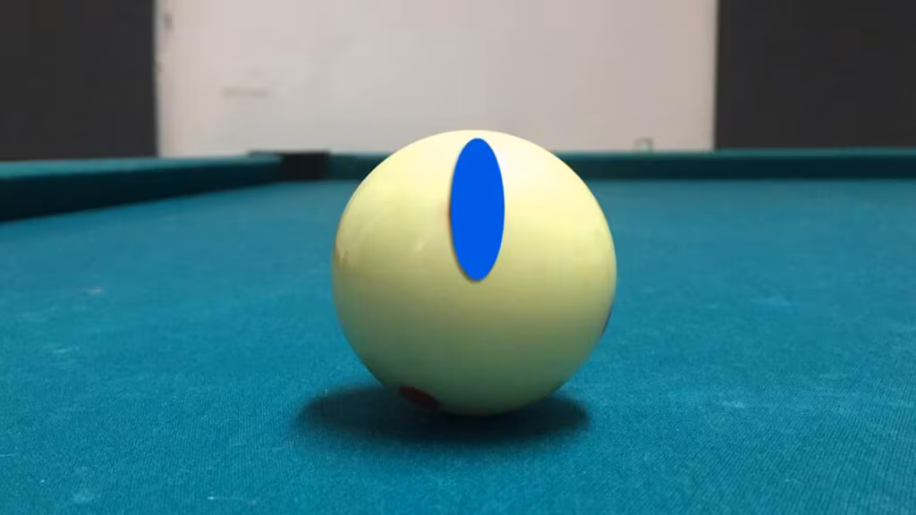 El truco del almendruco: golpearla arriba, de tal manera que incrementemos la rotación natural de la blanca. Cuanta mayor distancia, menos le tendremos que dar por arriba.