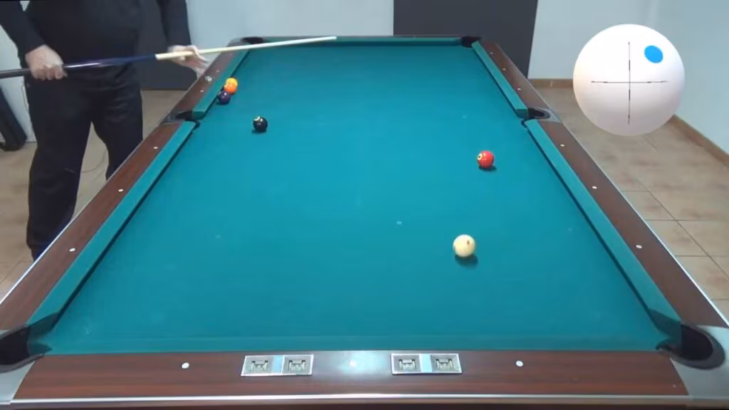 Hay que tener en cuenta que tenemos que jugar con la potencia del tiro: cuanta mayor distancia, la blanca adquiere más efecto “corrido” de manera natural.