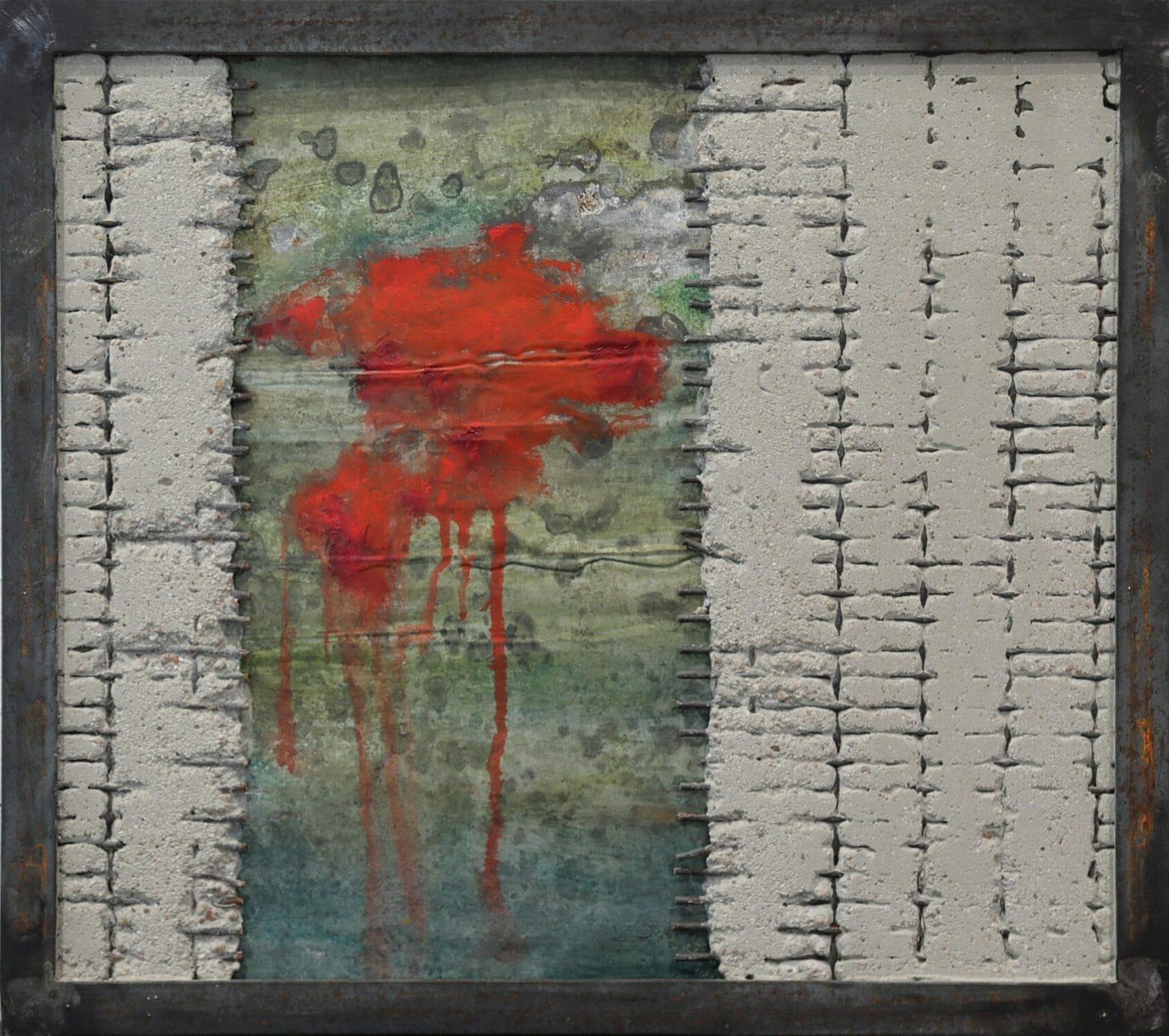 Viaggio 8 – olio su lamiera zincata e ferro e cemento – 38,5×43 cm- 2018