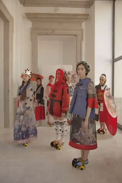 En cuando a la inspiración, ‘he querido realizar una introspección a los lugares donde he crecido como persona y como profesional: China y España. En el caso de China, elegí la última dinastía de China: Dinastía Qing; por su parte, el flamenco y los toros, son los exponentes de la cultura española tradicionalmente más reconocidos en el exterior’. M.I.X surge del resultado de unir los estereotipos culturales de ambas regiones introduciendo una perspectiva actual. Los tejidos y materiales de esta colección se combinan: tejidos clásicos (organza de seda, tafetán de seda) se mezclan con tejidos muy técnicos (como mallas 3D, Plásticos, tejido de papel).