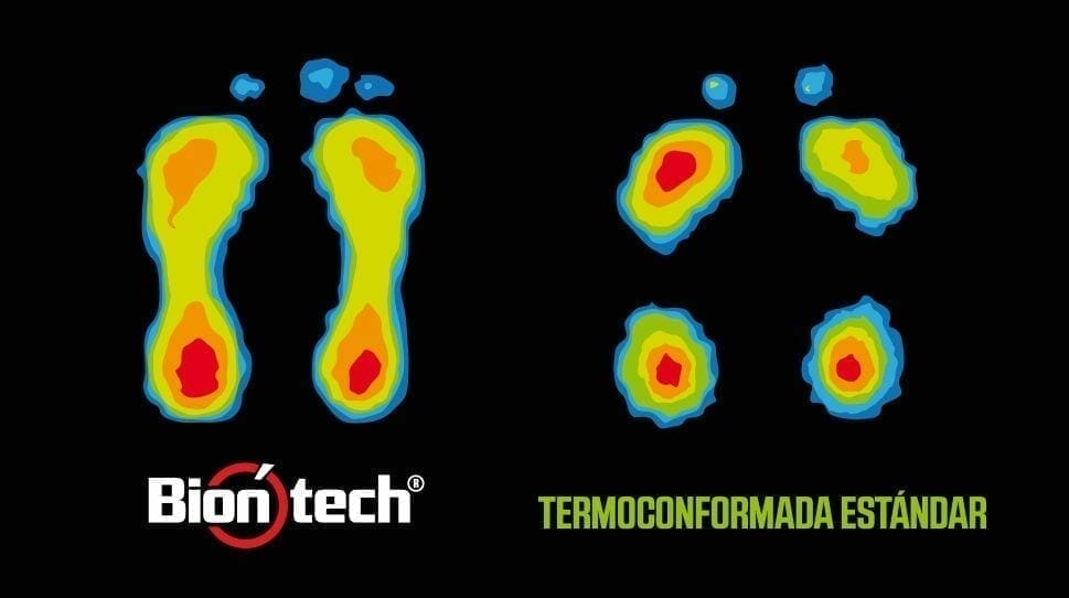 Biontech es una plantilla biomecánica que se adapta a cada pisada gracias a un material inteligente termoconformable. La adaptación a la pisada de cada pie se consigue calentando la plantilla en un microondas durante unos 30 segundos (en su primer uso) y calzarlas. El material termosensible con el que está fabricado se irá moldeando conforme a la pisada al enfriarse, consiguiendo una adaptación personalizada.
