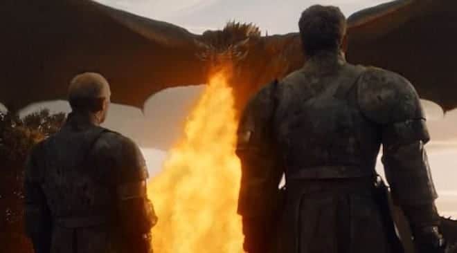Dice Cersey que la Fortaleza Ropja nunca ha caído pero… la cosa pinta mal para la Lannister. Y ojo que la Guardia Dorada también se rinde. Desembarco del Rey ha caído y sólo quedala Reina en su fortaleza, que no parece tener defensa alguna. Suenan las campanas (el pueblo ha sido tomado y se rinden finalmente, pero Cersey no parece muy convencida). Entonces Daenetrys nos soprende y arrasa con el pueblo sin piedad. Se acabó la Reina misericorde y Jon Nieve quiere poner orden ante la crueldad de Daneerys (ojo, algunos lo esperábamos ya). Parece que la fiereza de la Reina de Dragones no sienta bien y Jon piensa ocupar el trono que le pertenece por herencia.